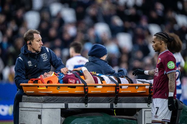 Konstantinos Mavropanos musel byť natiahnutý počas nedeľňajšieho zápasu tretieho kola FA Cupu West Ham United proti Queens Park Rangers.