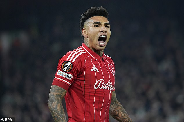 Brazílsky útočník strelil gól v každom polčase, pretože Forest ukončil ligovú fázu vysoko