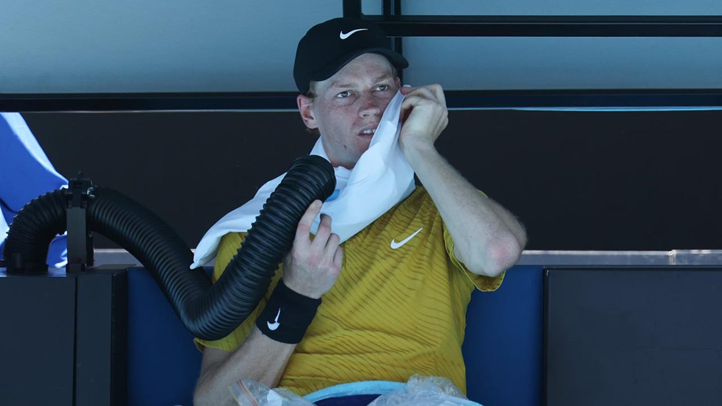 Podmienky si citeľne vybrali Taliana Jannika Sinnera, ktorý sa počas tretieho kola mužskej dvojhry na Australian Open snažil pretiahnuť cez zjavné kŕče a potreboval asistenciu klimatizačnej trubice.