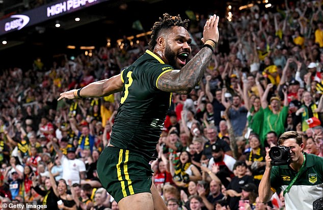Hamiso Tabuai-Fidow odohral šesť testov za Austráliu, ale teraz bude hrať za Samou (na snímke po strelenom pokuse s Tongou v roku 2024)