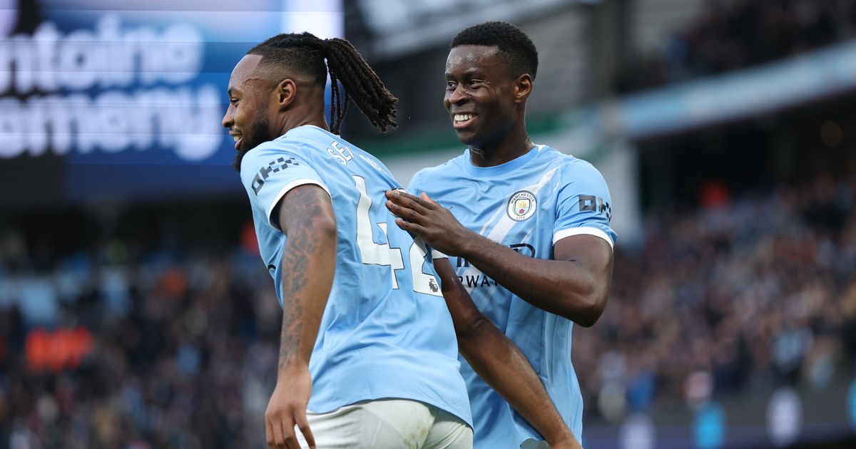 MANCHESTER, ANGLICKO - 24. JANUÁRA: Antoine Semenyo z Manchestru City oslavuje strelenie druhého gólu počas zápasu Premier League medzi Manchestrom City a Wolverhampton Wanderers na Etihad Stadium 24. januára 2026 v Manchestri v Anglicku. (Foto: Marc Atkins/Getty Images)