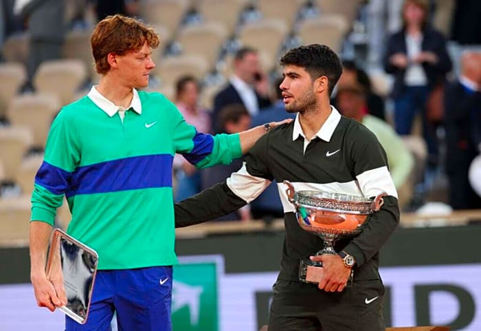 V jednom z najväčších športových podujatí v histórii sa Alcaraz ubránil v dvoch setoch proti Sinnerovi a vyhral 4-6, 6-7, 6-4, 7-6, 7-6.