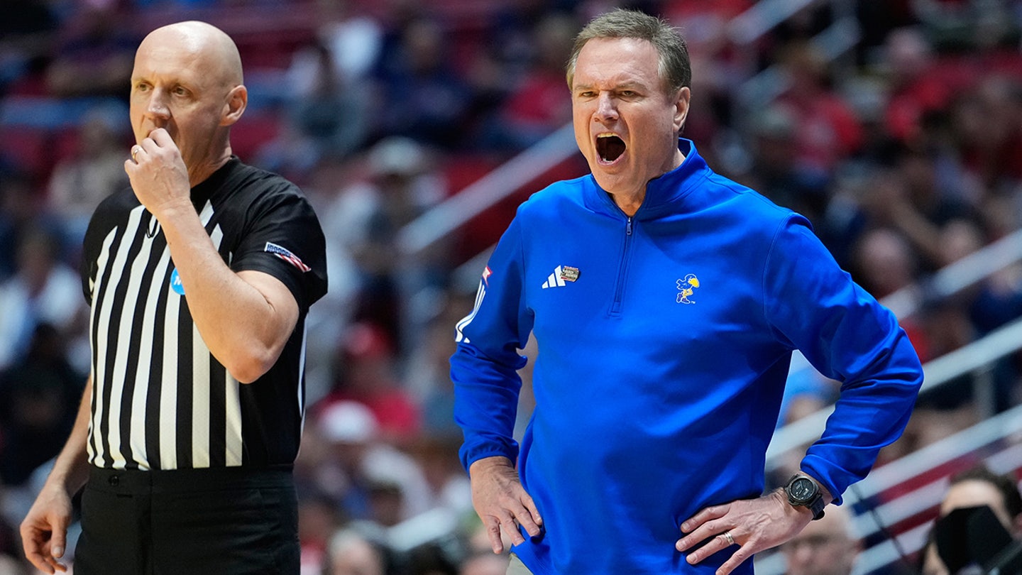 Hlavný tréner Kansasu Bill Self kričí smerom k kurtu proti St. John’s počas prvej polovice zápasu druhého kola univerzitného basketbalového turnaja NCAA v nedeľu 22. marca 2026 v San Diegu. (AP Photo/Mark J. Terrill)