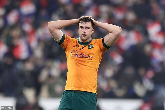 Prehra zanechala Toma Hoopera (vpravo) a jeho spoluhráčov nechcený kúsok histórie, pretože sa stali prvým tímom Wallabies, ktorý prehral 10 testov v kalendárnom roku