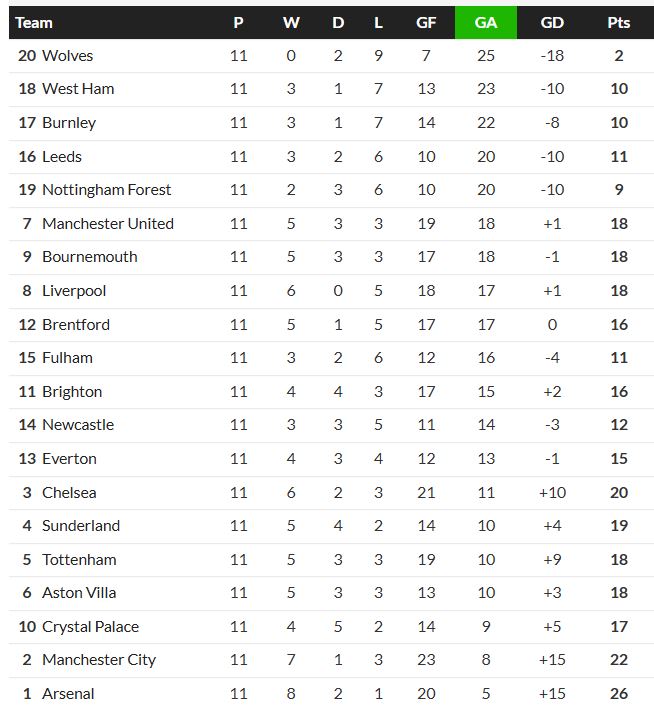 Pre kontext je to horšie ako kluby ako Everton, Crystal Palace, Brighton, Newcastle a Fulham, ktoré sú v tabuľke všetky pod nimi.