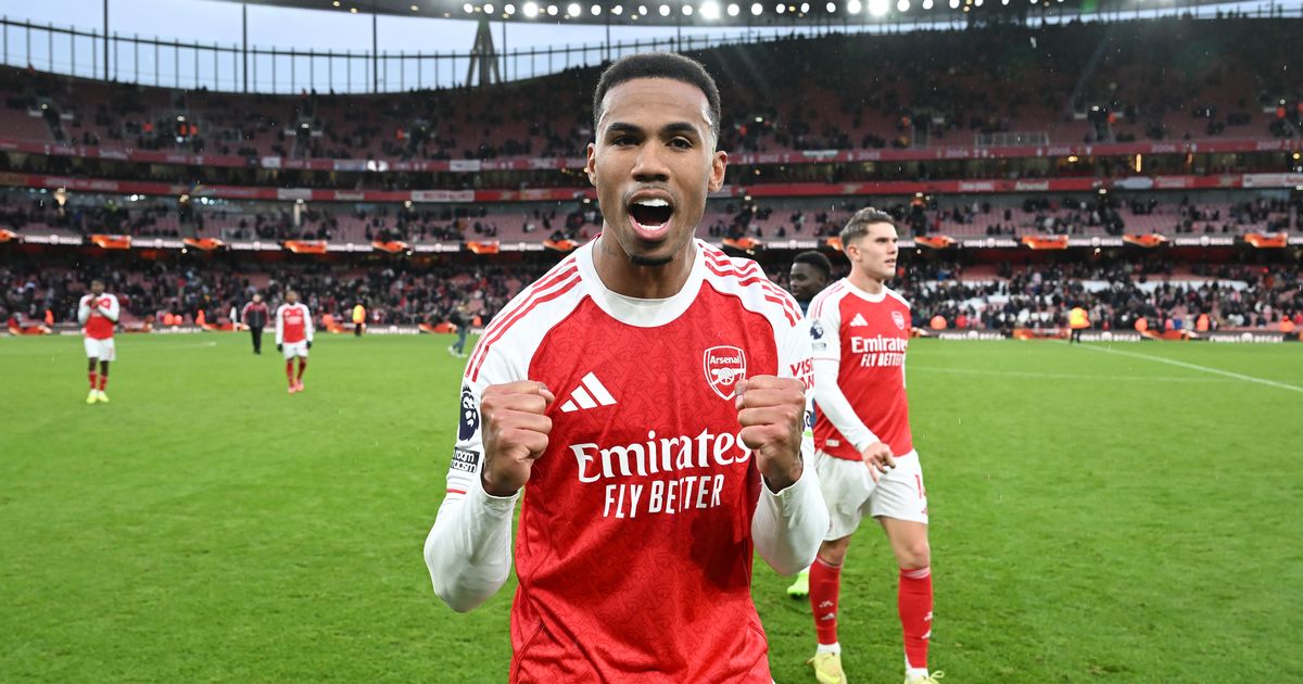 Gabriel z Arsenalu oslavuje po víťazstve tímu v zápase Premier League medzi Arsenalom a Crystal Palace na Emirates Stadium 26. októbra 2025 v Londýne v Anglicku