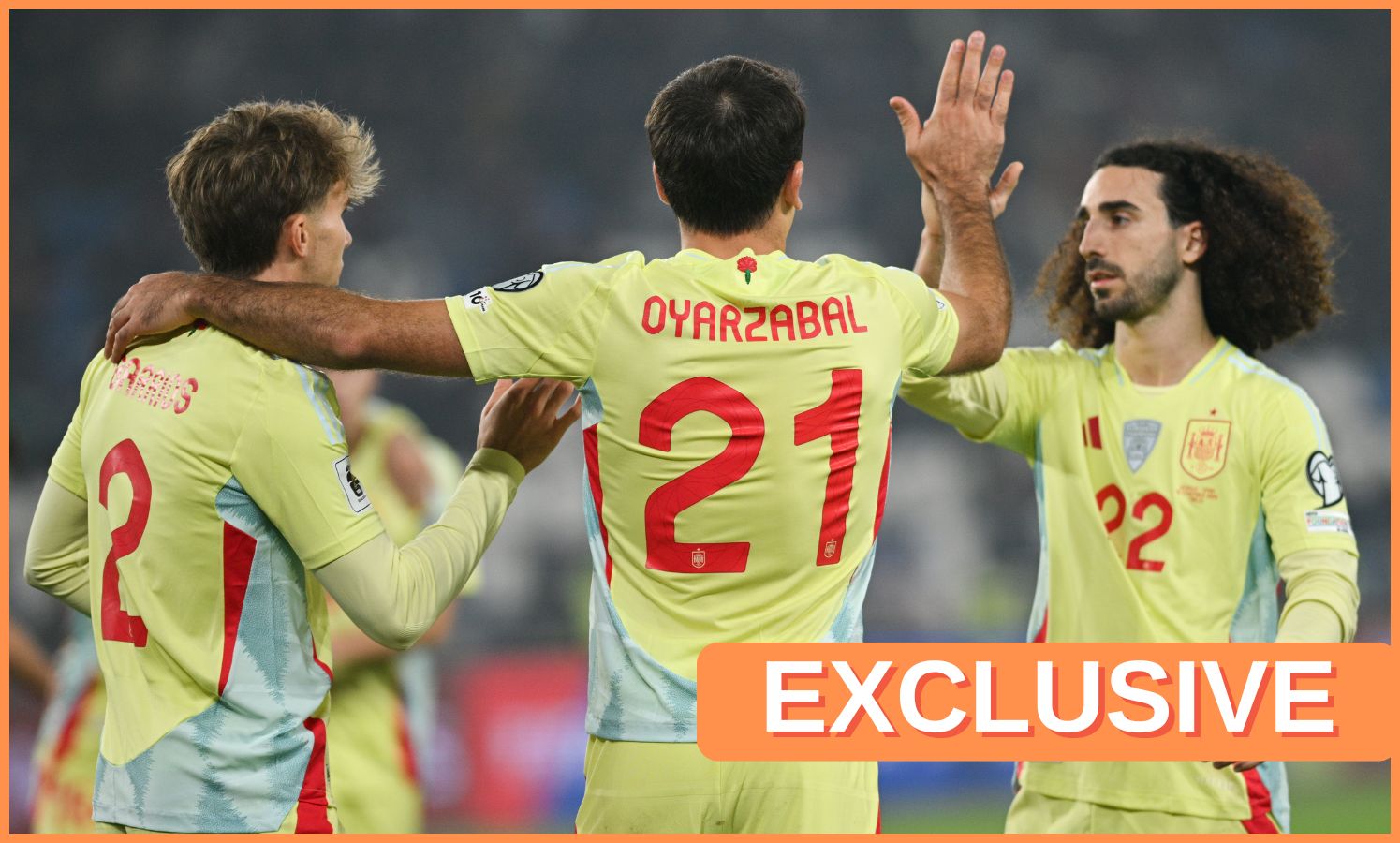 Pablo Barrios oslavuje so svojimi spoluhráčmi zo Španielska (Foto: Levan Verdzeuli/Getty Images)
