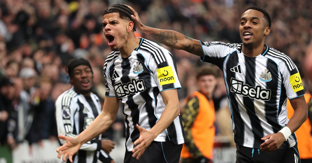 William Osula oslavuje gól za Newcastle proti Manchestru United