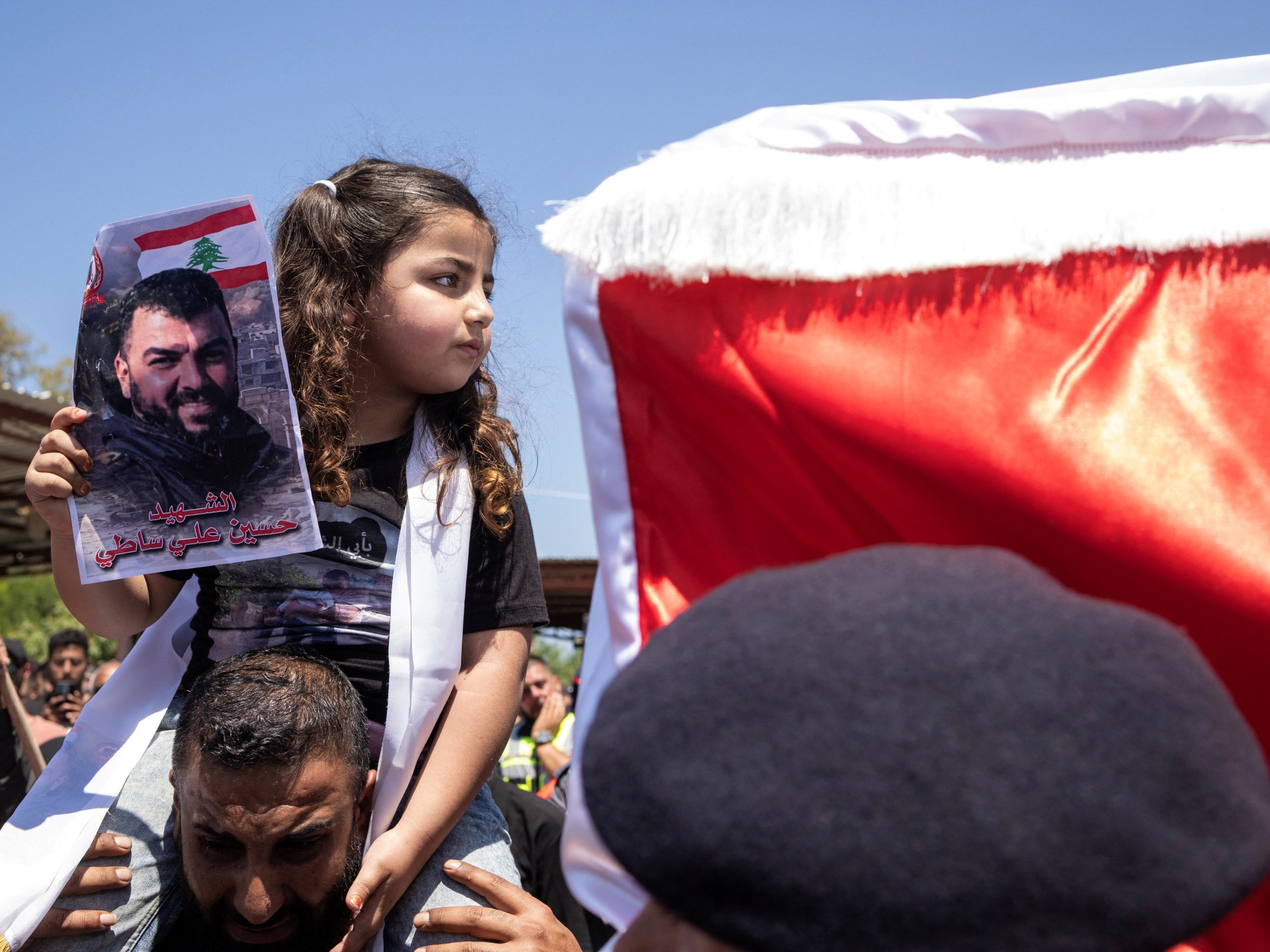 Mladé dievča v južnom Libanone sa pripojilo k stovkám smútiacich za svojím otcom, jedným z troch zdravotníkov zabitých pri izraelskom údere „dvojitým poklepaním“ počas prímeria sprostredkovaného USA. V Libanone zahynulo najmenej 95 záchranárov, čo podľa OSN môže predstavovať vojnový zločin.