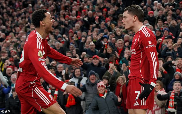Ale Liverpool v jedinom napínavom období odobral zápas Wolves gólom v 41. minúte Ryana Gravenbercha – nádherne mu asistoval Jeremie Frimpong – a Wirtza, ktorý od úľavy a radosti utiekol a bil sa do pŕs.