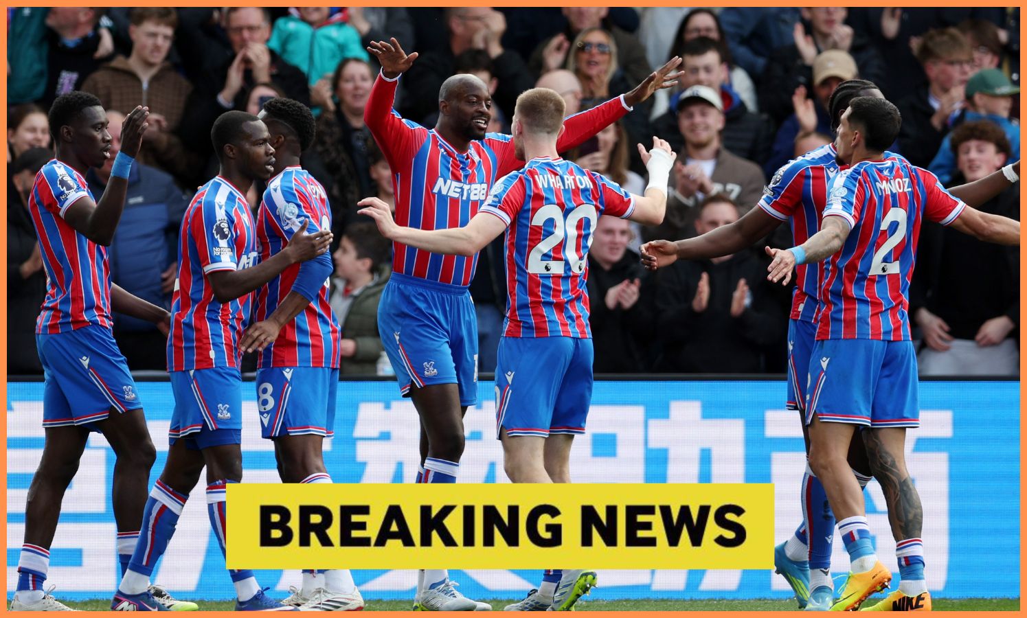 Adam Wharton oslavuje so svojimi spoluhráčmi z Crystal Palace (Foto: Steve Bardens/Getty Images)
