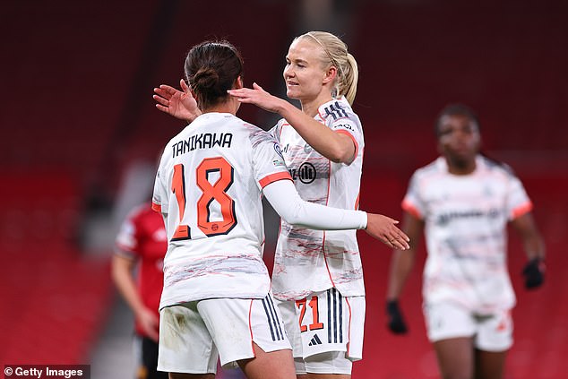 Man United 2-3 Bayern Mníchov: Pernille Harder sa vracia, aby prenasledovala tím Marca Skinnera, keď Reds čelia skľučujúcej spiatočnej ceste do Nemecka vo štvrťfinále ženskej Ligy majstrov