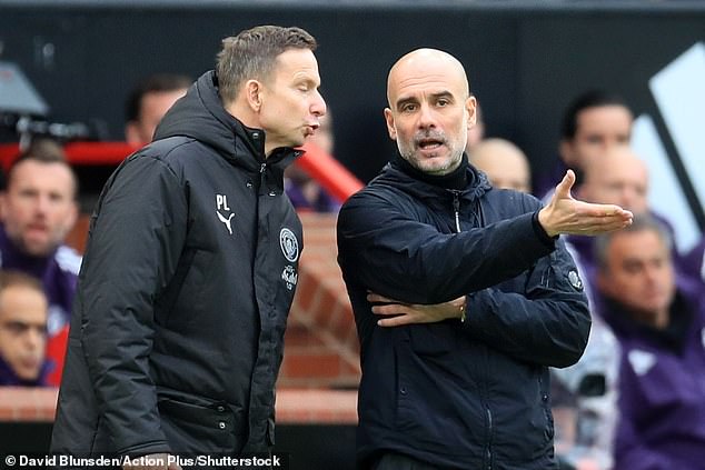 Pep Guardiola a jeho asistent Pep Lijnders vyzerali na čiare podráždene