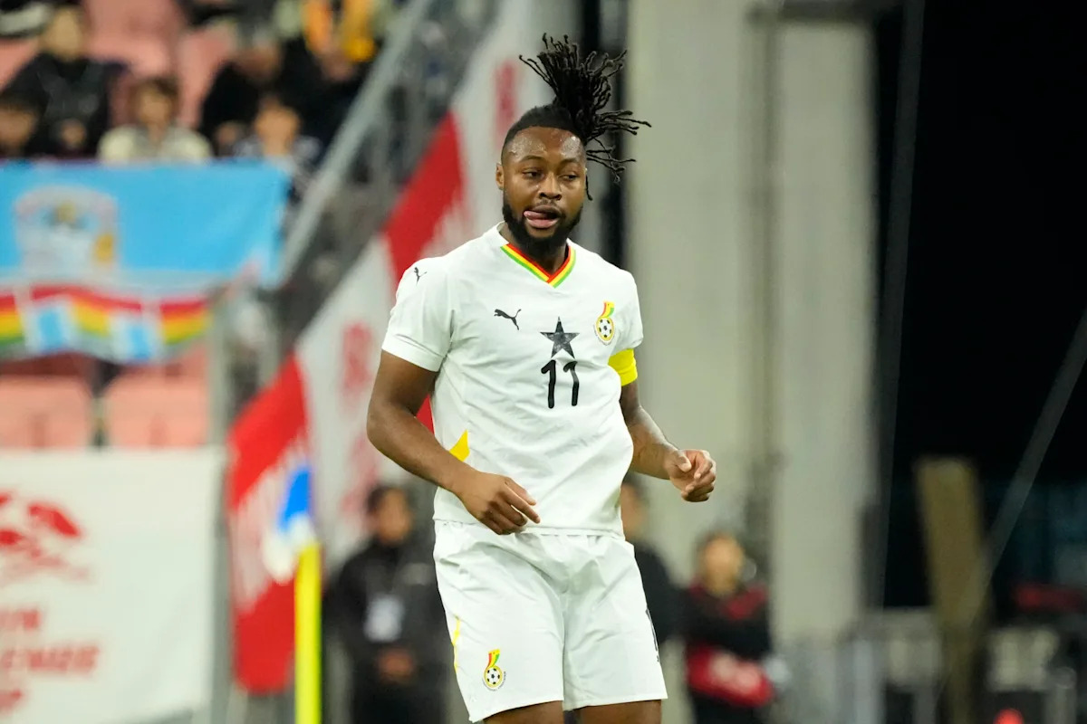 TOYOTA, JAPONSKO – 14. NOVEMBRA: Antoine Semenyo z Ghany v akcii počas medzinárodného priateľského zápasu medzi Japonskom a Ghanou na štadióne Toyota 14. novembra 2025 v Toyote, Aichi, Japonsko. (Foto: Koji Watanabe/Getty Images)