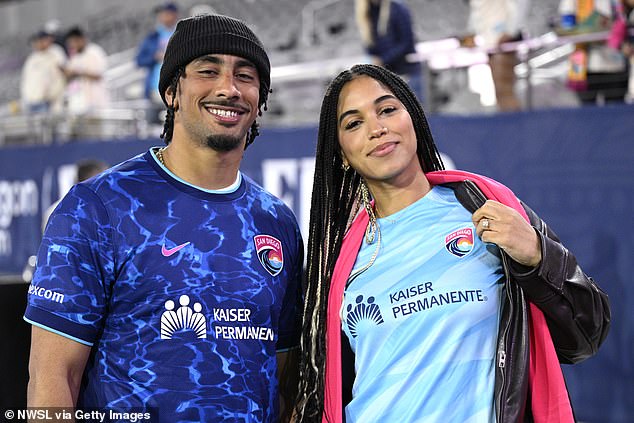 Jordan Love pózuje na fotografii so svojou terajšou manželkou Ronikou Stone v San Diegu