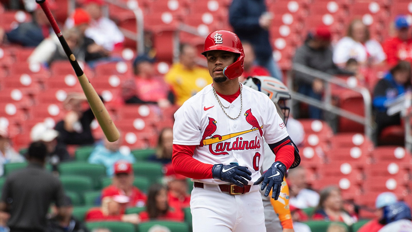 Masyn Winn zo St. Louis Cardnial hádže pálkou po údere počas druhej zmeny bejzbalového zápasu proti New York Mets, v stredu 1. apríla 2026 v St. Louis. (AP Photo/LG Patterson)