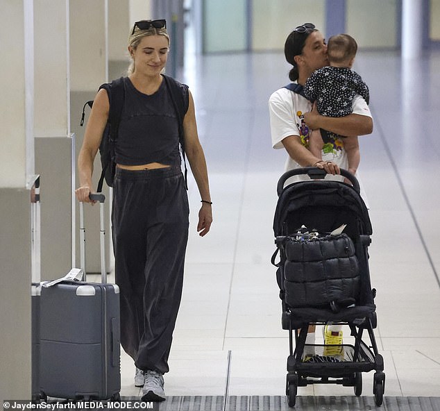 Sam Kerr sa podelila o nežné chvíle so synom Jaggerom, keď s manželkou Kristie Mewis odleteli z Perthu po svadbe na Silvestra.