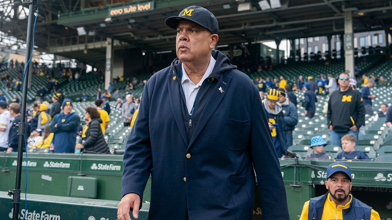 Športový riaditeľ Warde Manuel z Michigan Wolverines vchádza na ihrisko pred futbalovým zápasom proti Northwestern Wildcats na Wrigley Field v Chicagu, Illinois, 15. novembra 2025. (Ben Hsu/Icon Sportswire)
