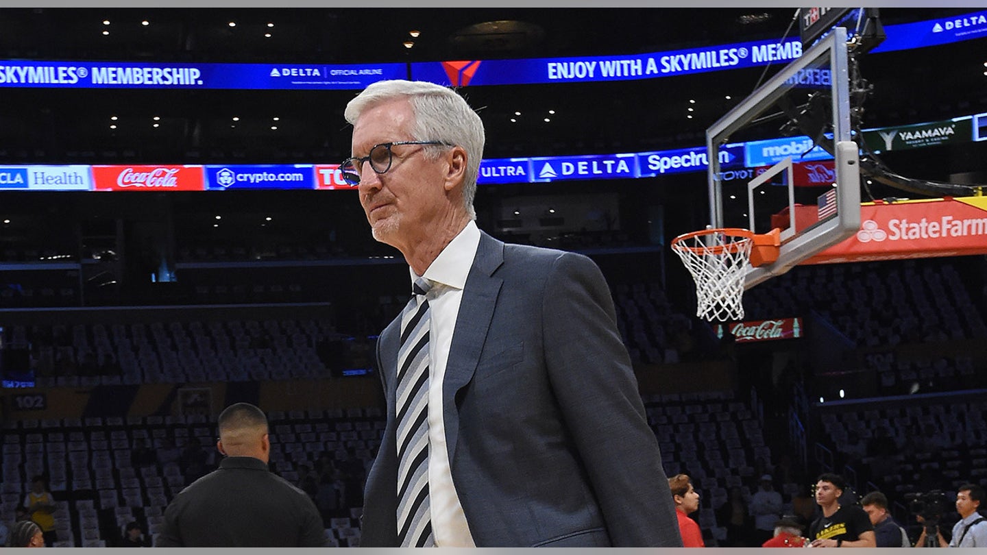 Hlásateľ hry ESPN Mike Breen zvolal zápas medzi Los Angeles Lakers a Dallas Mavericks v Crypto.com Arena v Los Angeles v Kalifornii na 17. januára 2024. (Kirby Lee/USA TODAY Sports)