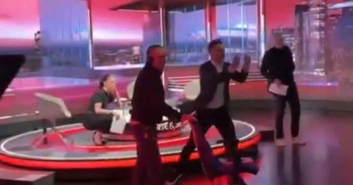 Na záberoch bolo vidieť, ako Doyle pretekal štúdiom, než upriamil svoju pozornosť na záložníka Liverpoolu s výslovným výbuchom. Zdá sa, že Doyle hovorí: „Saď na to ty, Liverpool c***.“