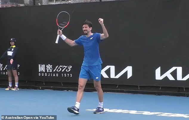 Sebastian Ofner (na obrázku) zrejme oslavoval predčasné víťazstvo počas kvalifikačného zápasu Australian Open proti Nisheshovi Basavareddymu, než utrpel porážku.