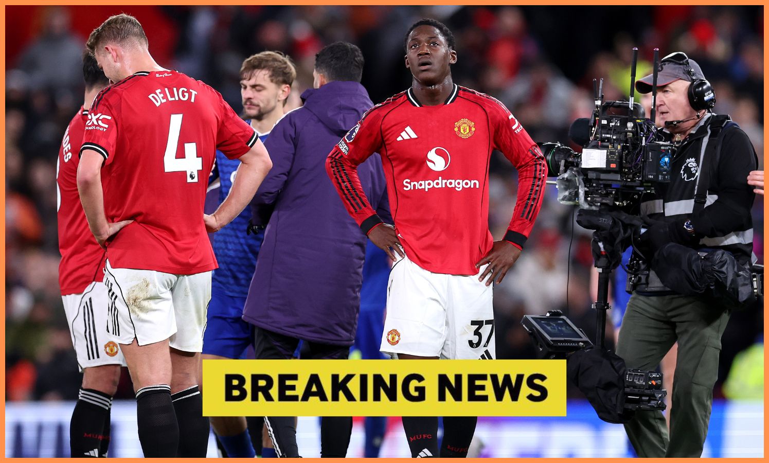 Kobbie Mainoo z Manchestru United reaguje po prehre s Evertonom (Foto: Alex Livesey/Getty Images)