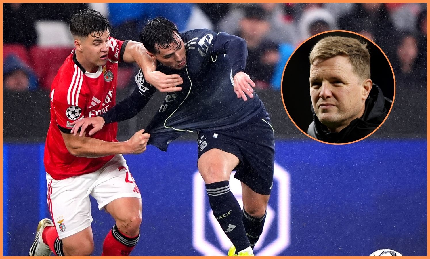 Brahim Diaz a Eddie Howe (Foto: Jose Manuel Alvarez Rey, Nathan Stirk/Getty Images)