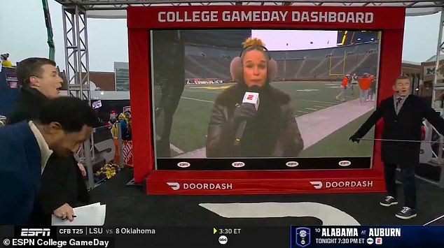 Okamžite sa stretla s neveriacou reakciou panelu štúdia vrátane Pata McAfeeho, Kirka Herbstreita a Nicka Sabana, ktorí nemohli uveriť, že vypustila nadávku.
