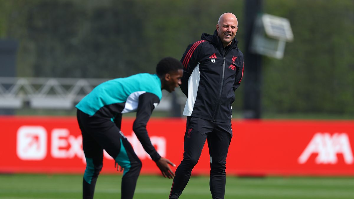 Arne Slot počas tréningu Liverpoolu