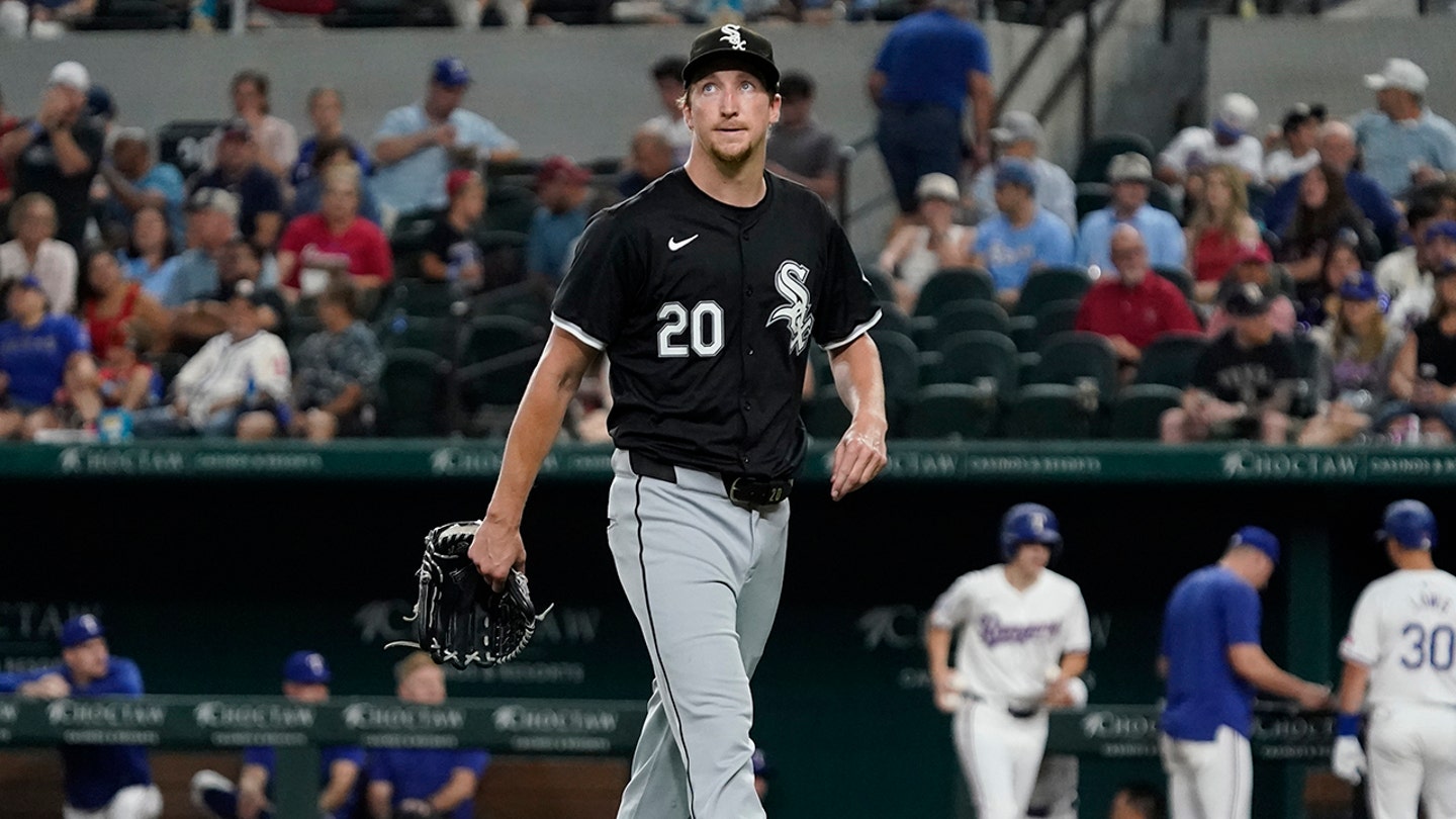 Chicago White Sox začínajúci džbán Erick Fedde uteká z ihriska po odstránení počas siedmej smeny proti Texas Rangers na Globe Life Field 22. júla 2024. (Raymond Carlin III/USA Today Sports)
