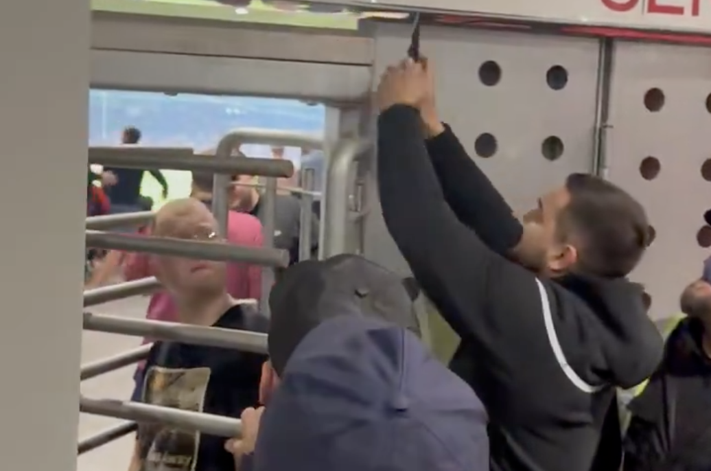 V snahe dostať sa k svojim krajanom vo vonkajšej časti, priaznivec dostal uviaznutý medzi dvoma sadami ventilátorovstať sa protagonistom scény tak neuveriteľnej, ako aj komickej. „Pomoc“ od albánskych fanúšikov bola zbytočná…
