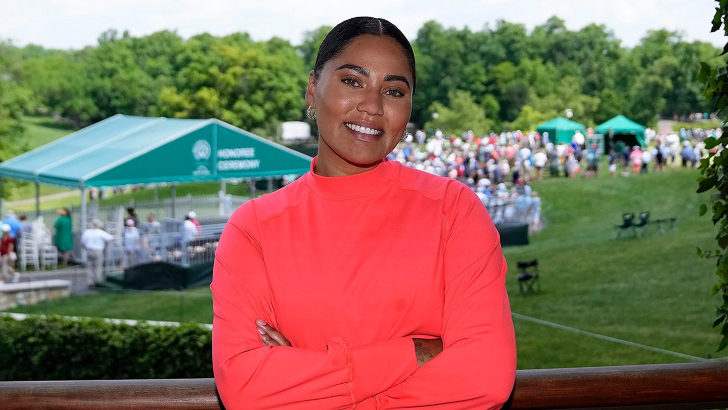 Ayesha Curryho polohy pre obraz počas celého dňa Golden Bear Pro-Am počas pamätného podujatia v golfovom klube Muirfield Town v Dubline v štáte Ohio 1. júna 2022. (Kyle Robertson/ Columbus Dispatch/ USA Today Network)