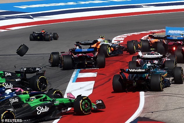 Chaos sa rozpútal na úvodnej hrane na začiatku šprintérskych pretekov na okruhu Circuit of the Americas v Austine v Texase.