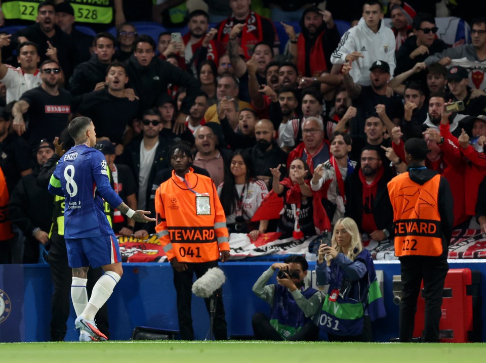 Chelsea’s 1-0 víťazstvo v porovnaní s Benficou sa rýchlo skončila po tom, čo sa nechutný výskyt videl, ako nasledovníci Benfica hodili veci na Enzo Fernandez.
