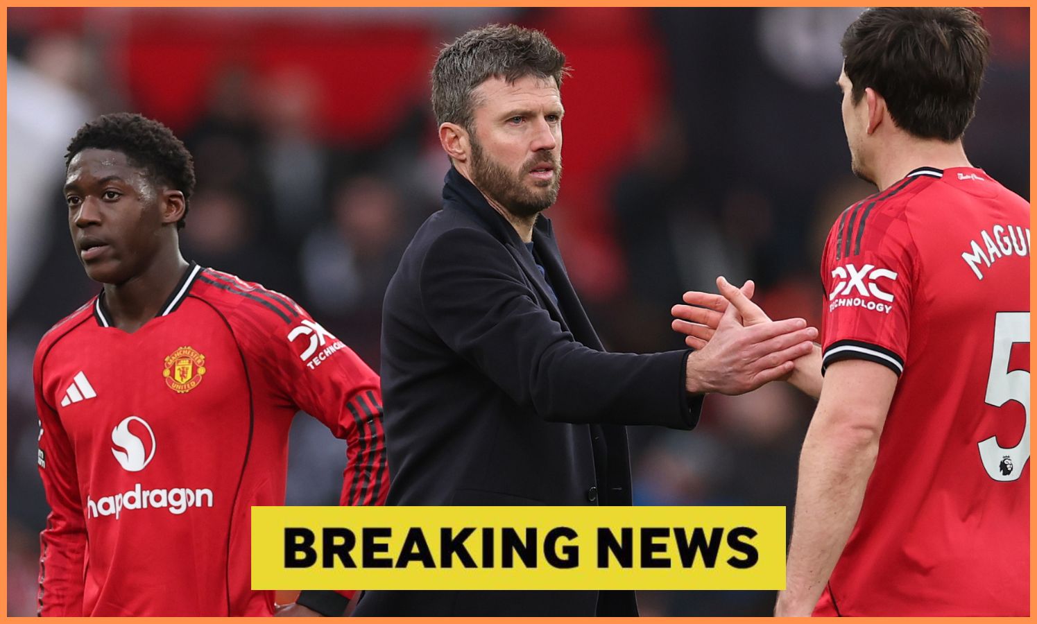 Michael Carrick s Harrym Maguire a Kobbie Mainoo (Foto: Stu Forster/Getty Images)