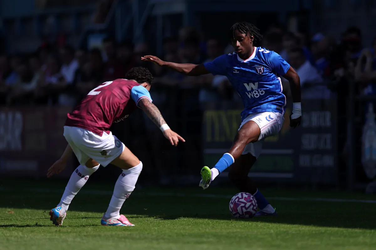SUNDERLAND, ANGLICKO – 10. AUGUSTA: Dana Neila zo Sunderlandu vyzýva Pathe Ciss z 1Rayo Vallecano počas predsezónneho priateľského zápasu medzi Sunderlandom a Rayo Vallecano na štadióne Light 10. augusta 2025 v Sunderlande v Anglicku. (Foto: Stu Forster/Getty Images)