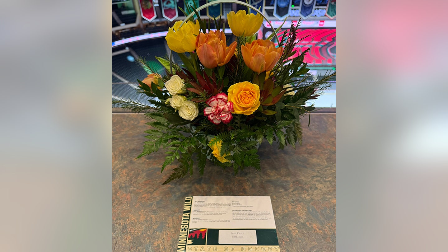 Kvety odložené v hre Jessi Pierceovej v hre Minnesota Wild. (Minnesota Wild)