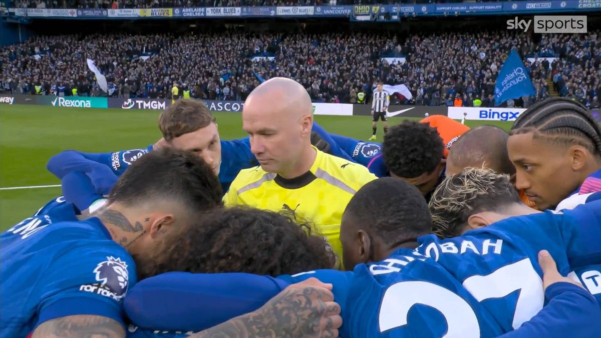 Hráči Chelsea sa pred zápasom zhlukli okolo rozhodcu Paula Tierneyho na strednom mieste, pričom Cole Palmer objal rozhodcu pred výkopom na Stamford Bridge.