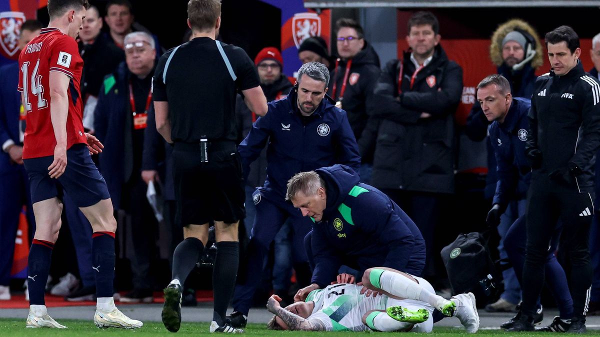 Tridsaťročného útočníka previezli do nemocnice po ťažkej kolízii so Štěpánom Chaloupkom, ku ktorej došlo len chvíľu po tom, čo vstúpil na ihrisko Írska ku koncu predĺženia v Prahe.
