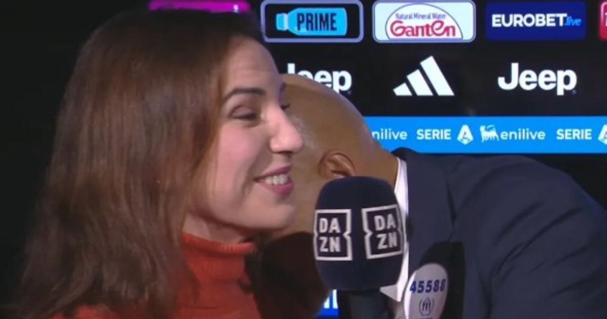 Šéf Juventusu Luciano Spalletti bizarne pobozkal reportérku počas pozápasového žvástania po kontroverznej remíze 2:2 proti Laziu.