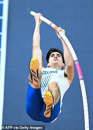 Skokan o žrdi David Holy (na obrázku) udrel sedembojára Joseho Fernanda Ferreiru, keď jeho neúspešný pokus zasiahol Brazílčana do tváre tyčou.
