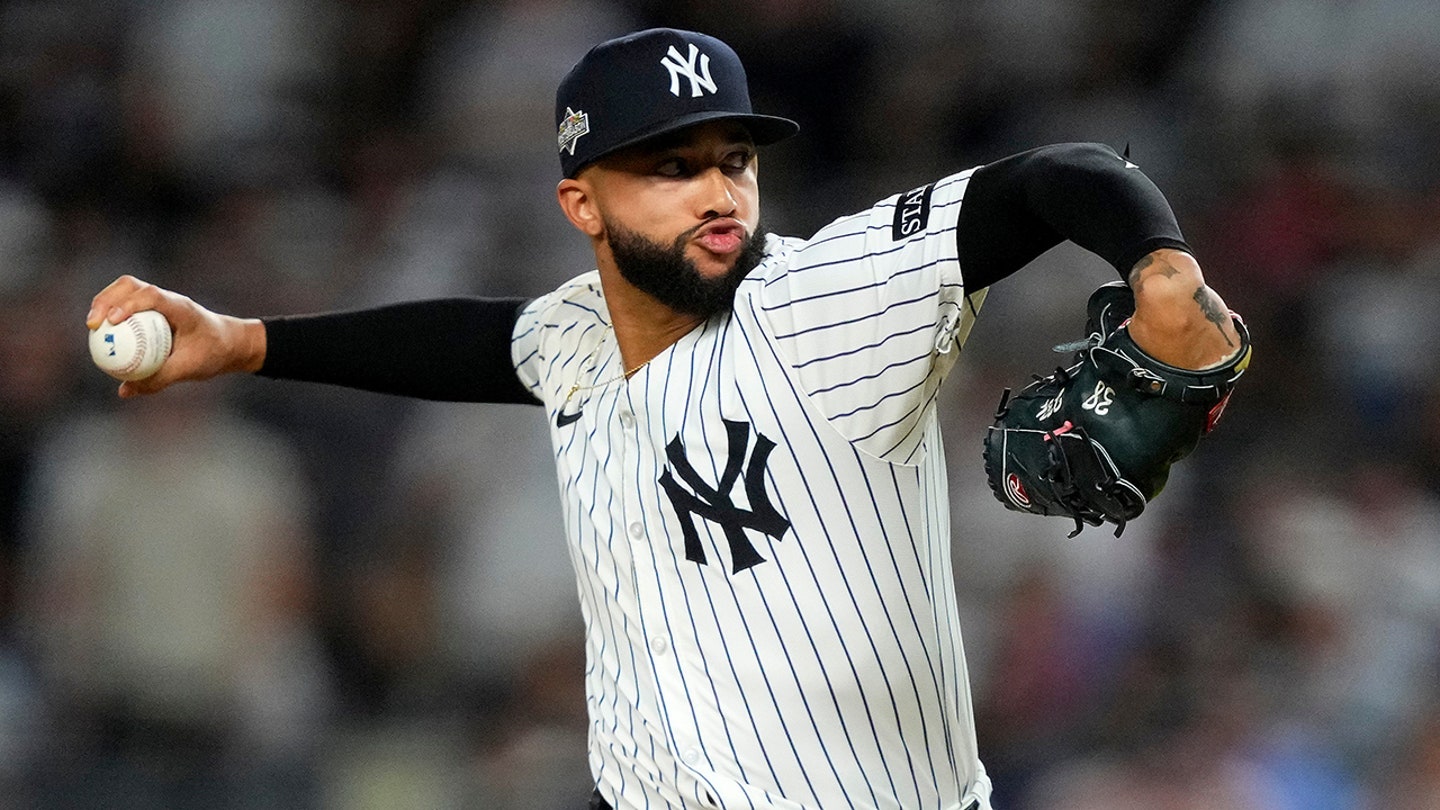 Nadhadzovač New York Yankees Devin Williams hrá proti Torontu Blue Jays počas siedmej smeny 3. zápasu bejzbalovej série American League Division Series, 7. októbra 2025 v New Yorku. (Yuki Iwamura/AP Photo, File)