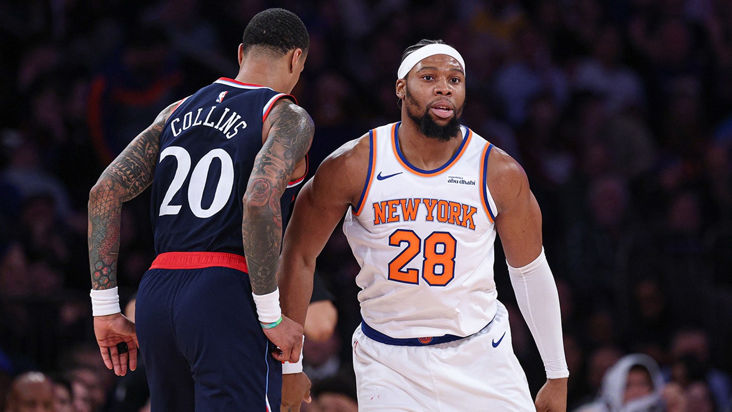 Útočník New York Knicks Guerschon Yabusele (28) reaguje po tom, čo 7. januára 2026 strelil kôš proti LA Clippers počas druhého polčasu v Madison Square Garden. (Vincent Carchietta/Imagn Images)