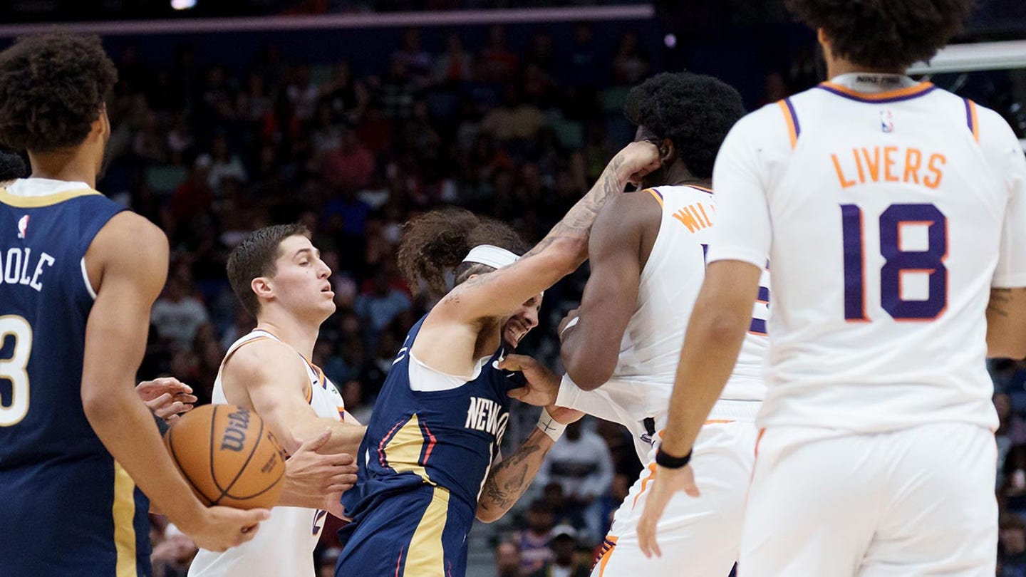 V tretej štvrtine sa center Suns Mark Williams pokúsil dostať do pozície, aby nastavil obrazovku na strážcu Pelicans Joseho Alvarada, zatiaľ čo Collin Gillespie z Phoenixu sa ho snažil obísť. Alvarado sa pokúsil dostať Williamsa z cesty dvoma rukami, no bol potrestaný faulom.
