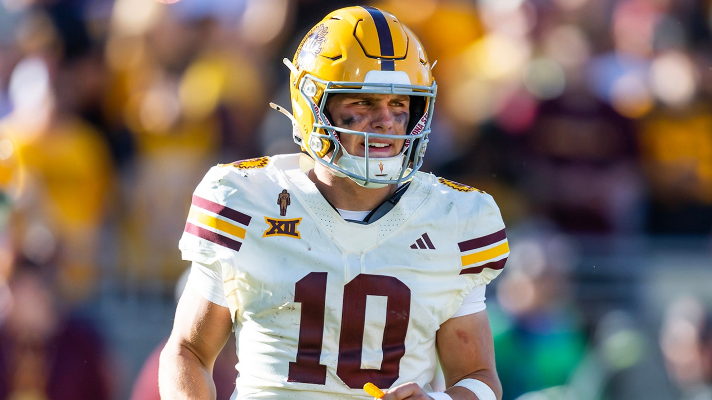 Rozohrávač Arizona State Sun Devils Sam Leavitt (10) proti Texas Tech Red Raiders na Mountain America Stadium 18. októbra 2025.