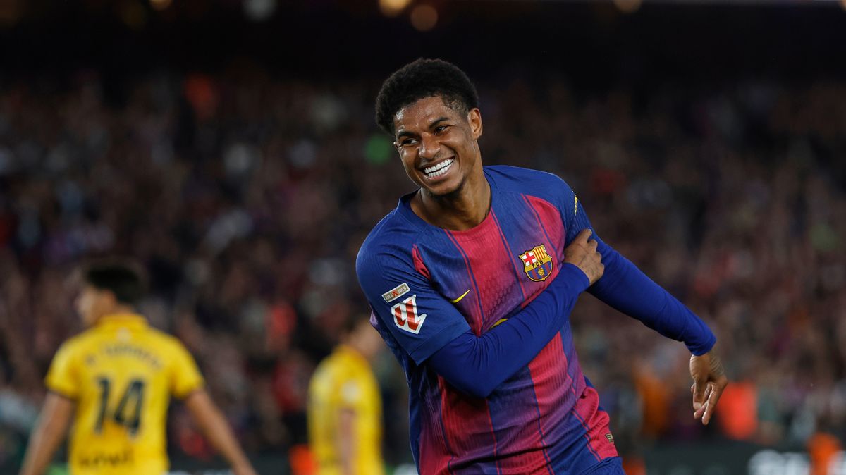 Marcus Rashford oslavuje gól Barcelony
