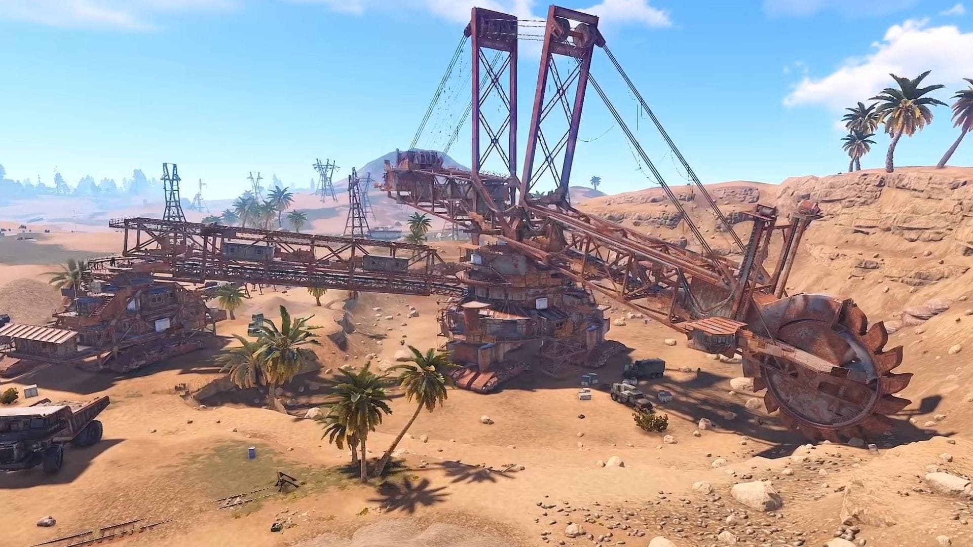 Obrovský bager je pamätník, kde môžete zbierať zdroje. Aj keď obsahuje loot crate spawns, primárne sa používa na pestovanie síry, kovovej rudy, HQM a kameňa v hre. Vyznačuje sa minimálnym stupňom žiarenia, ale je chránený celou armádou vedcov.