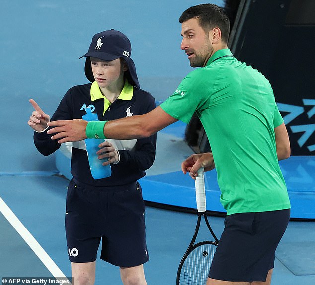 Novak Djokovič sa rozpráva s loptou počas zápasu na Australian Open. Chlapci a dievčatá nedostávajú za svoju prácu v Melbourne zaplatené