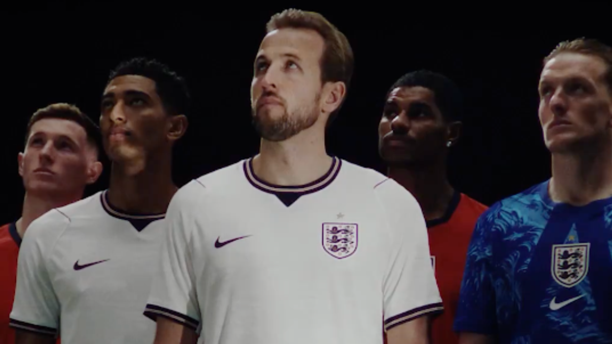 Anglicko predstavilo svoje nové súpravy domov a vonku na majstrovstvá sveta 2026, pričom Nike pridala na golier trojslovný slogan ako výnimočný detail. Tentoraz sa však športový výrobca rozhodol pre bezpečnejší dizajn po kontroverzii v roku 2024, keď bol tradičný červeno-biely kríž svätého Juraja na golieri zmenený tak, aby obsahoval fialové, modré a čierne pruhy.