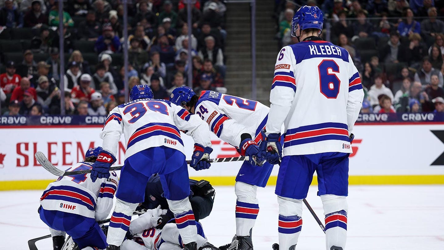 Svet juniorov: Cole Hutson z amerického tímu odchádza zo zápasu na nosidlách